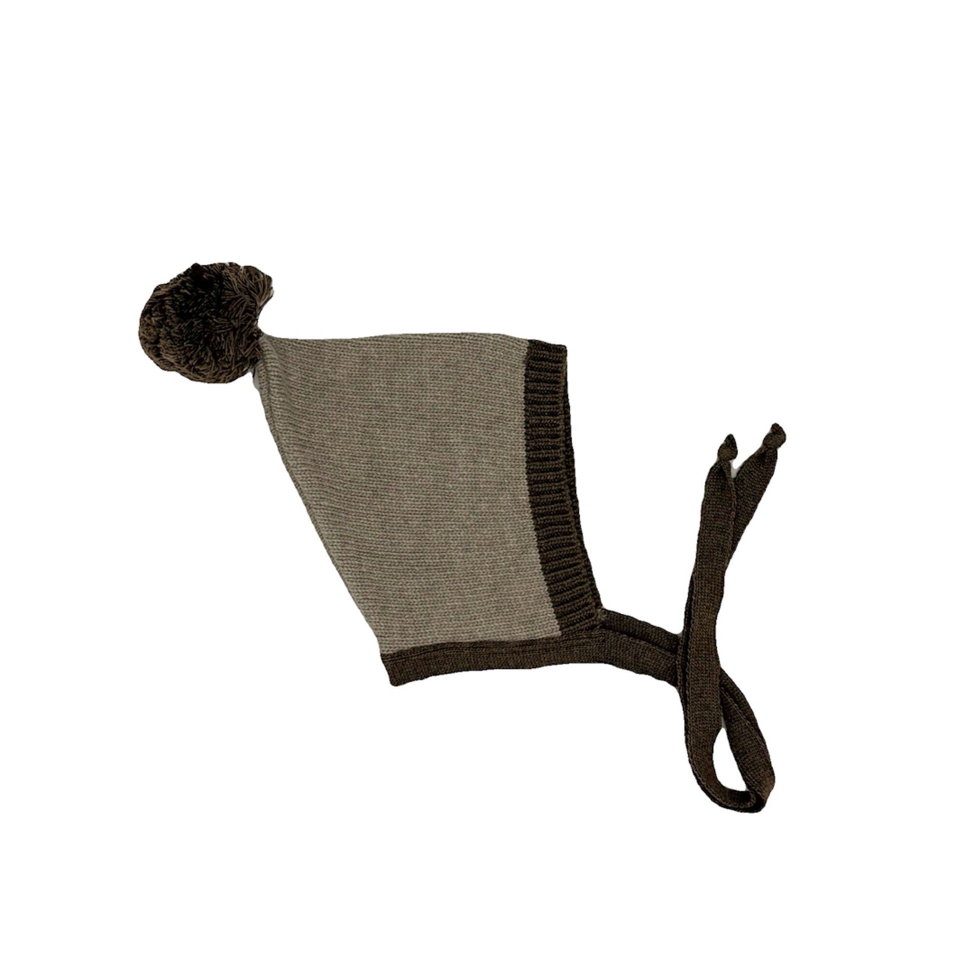 Capota tipo gnomo en color topo y pompón piedra.