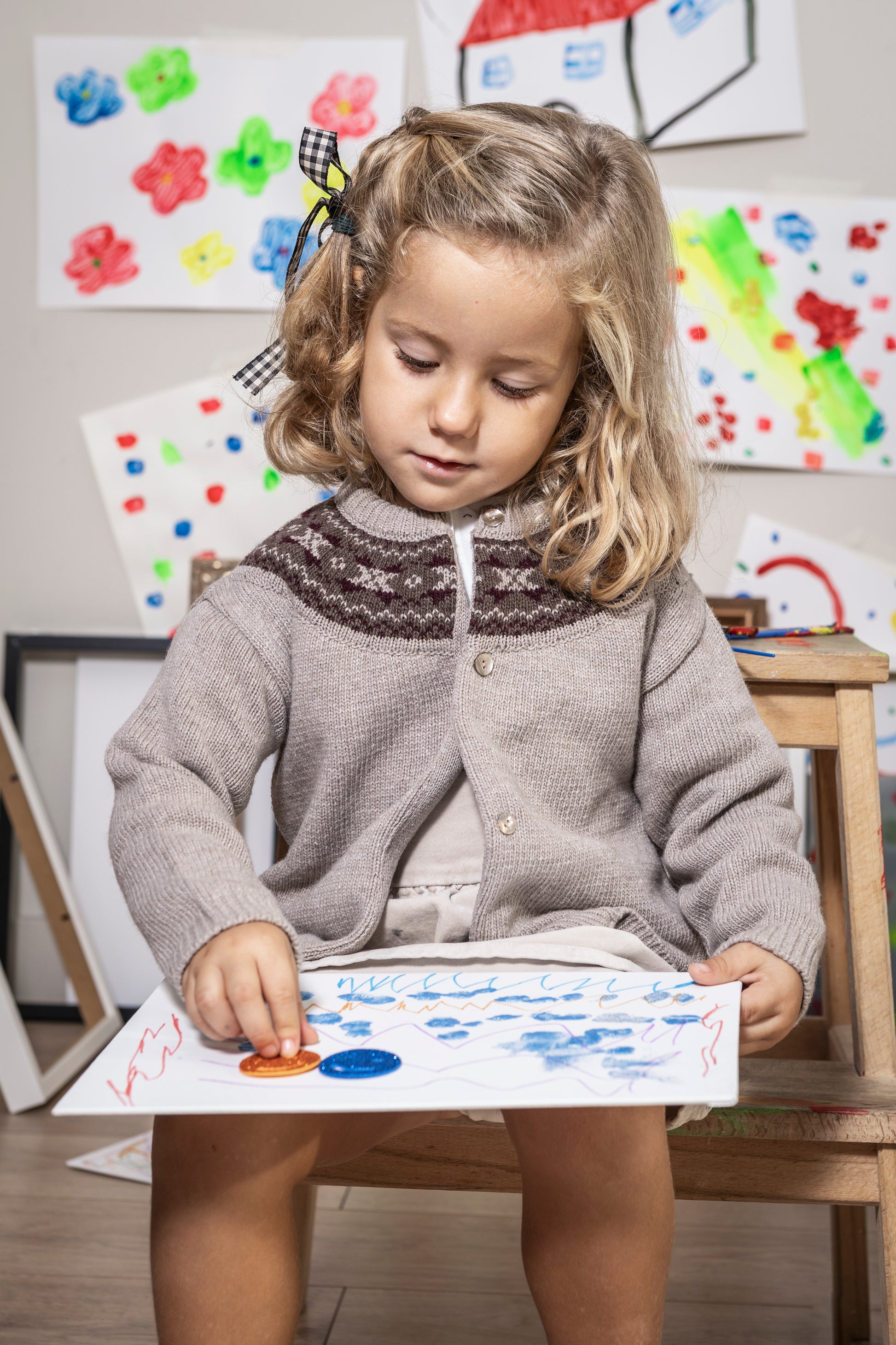 Cardigan Greca con dibujo greca en la parte superior en color piedra.