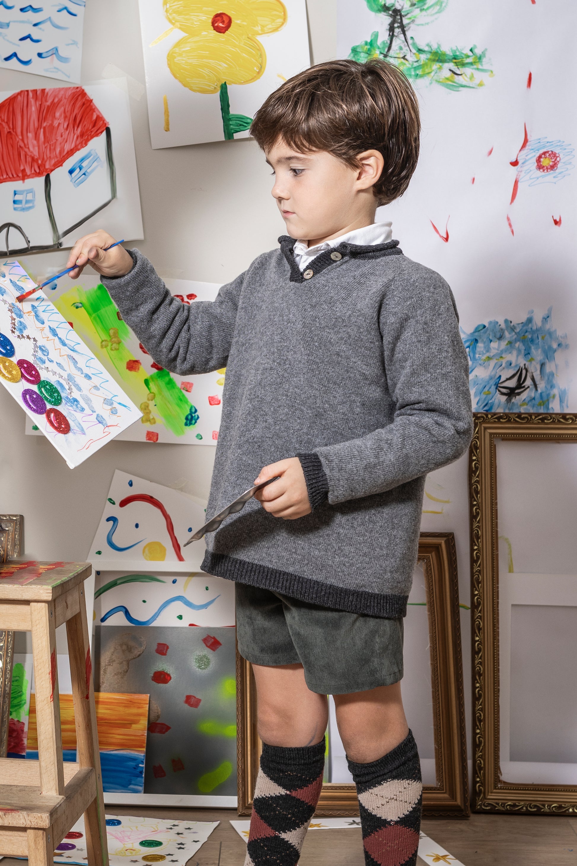 Jersey con cuello tipo mao, bicolor en color gris contrastado en carbón