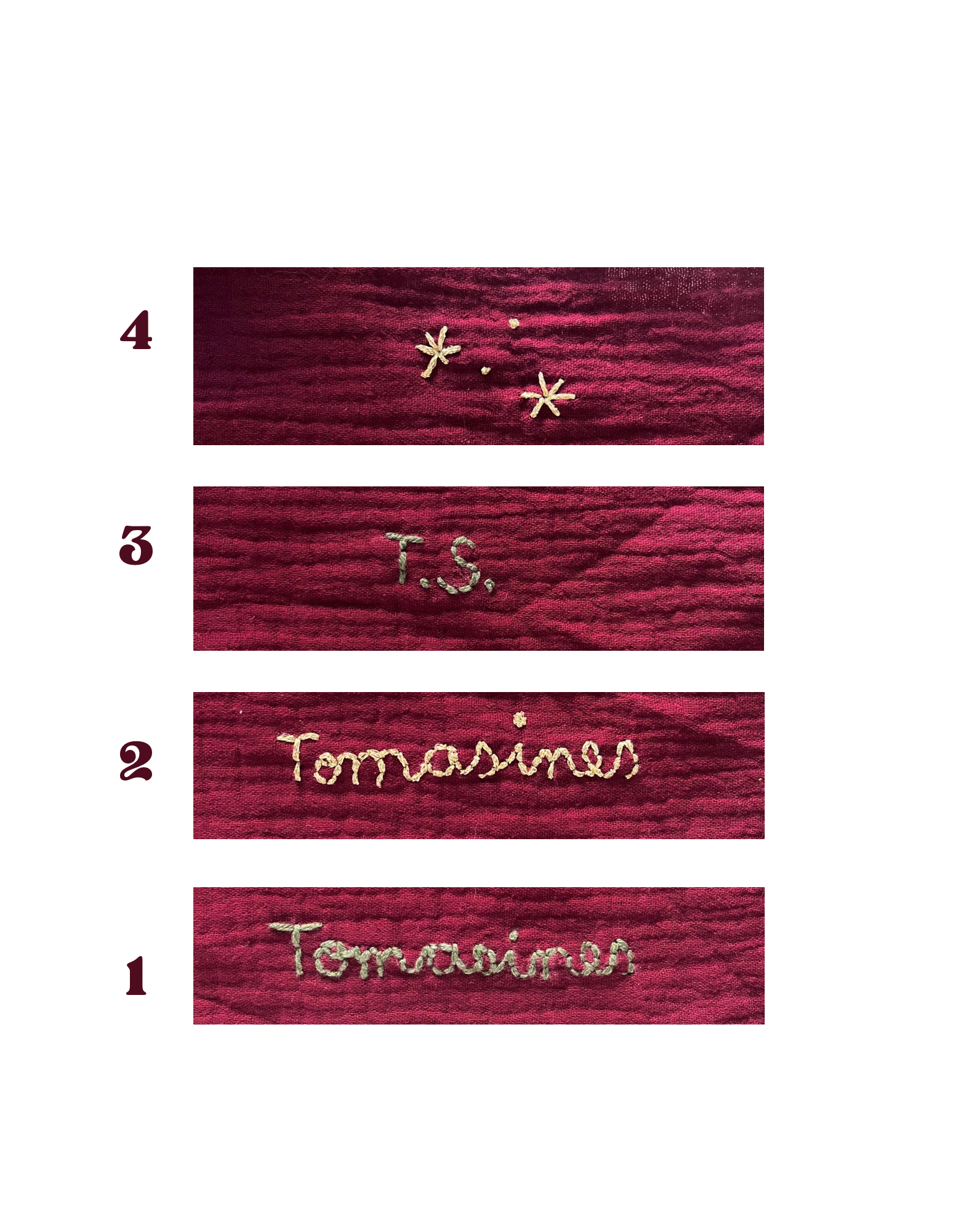 El bordado lo hace a mano Patricia Fdez.Guola (IG: @emamiau_) y nos lleva aproximadamente 5-6 días adicionales.