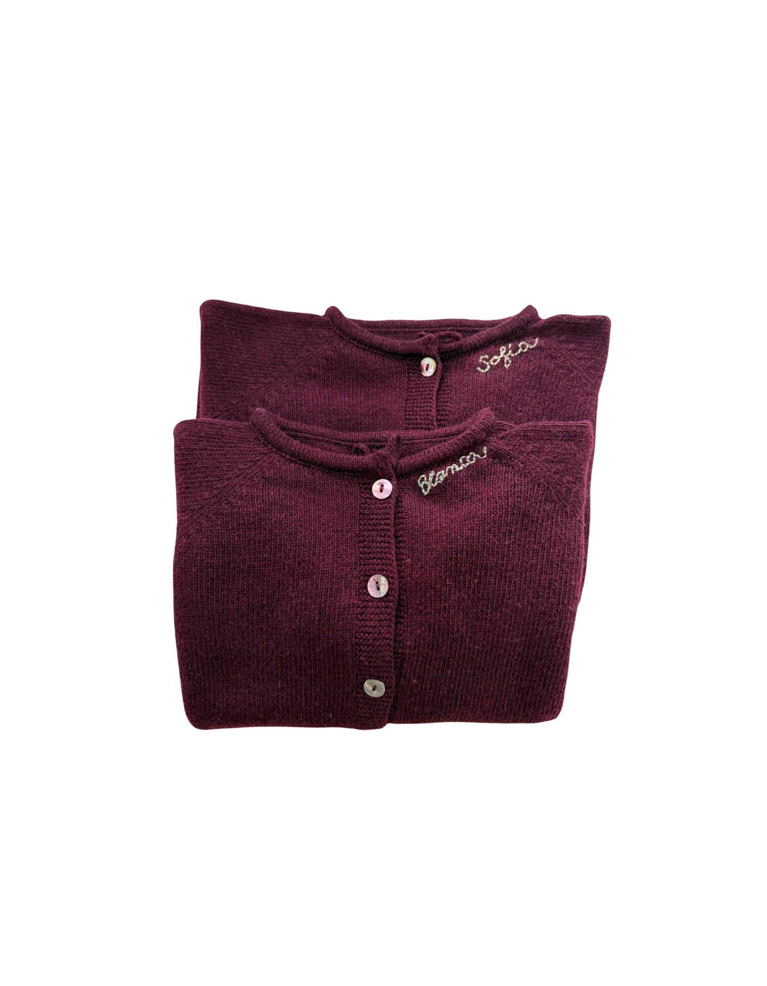 Cardigan: recomendamos bordar el nombre o iniciales en el cuello